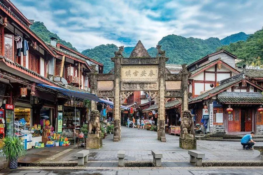 跑到山脚下的泰安古镇时,眼前忽然一亮,怎么白日里空空的石牌坊底下,竟像变戏法一样,多了一个闹热的早市。