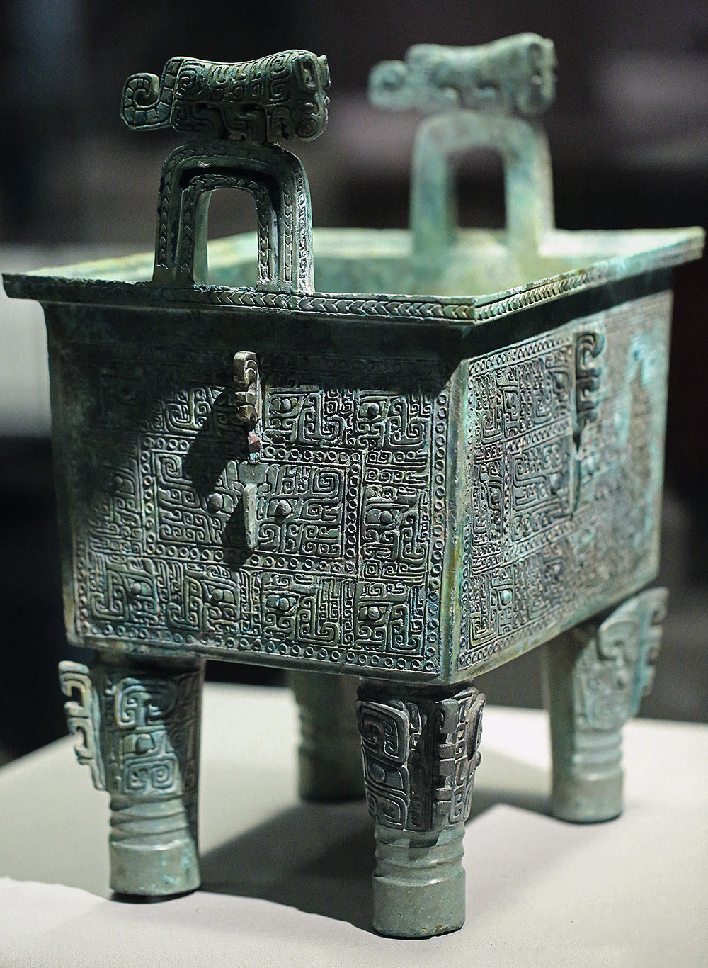 兽面纹虎耳青铜方鼎,商,通高95厘米,重49千克,现藏江西省博物馆