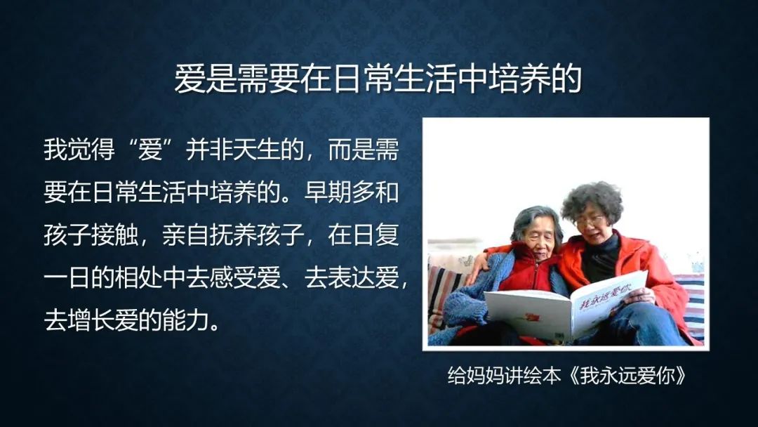 另外,如果爱曾经是断裂的,要想办法下功夫去重新建立连接,如果你的父母已经老了,没有得到过很多他们的爱,那么我们可不可以选择不做那个受害者,主动地去伸出手来,尝试着去重新建立爱的连接。