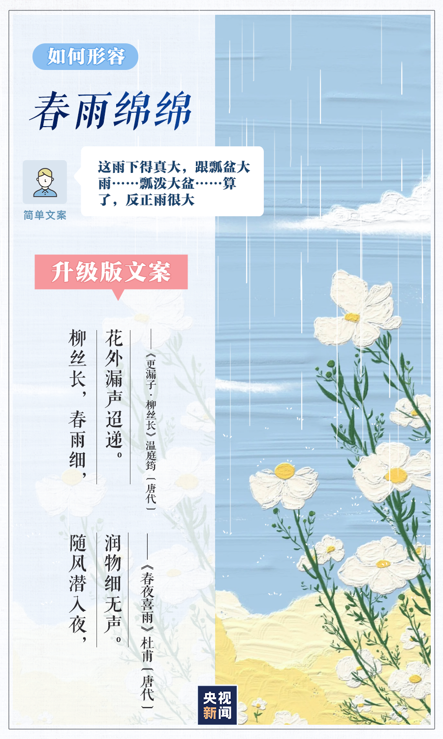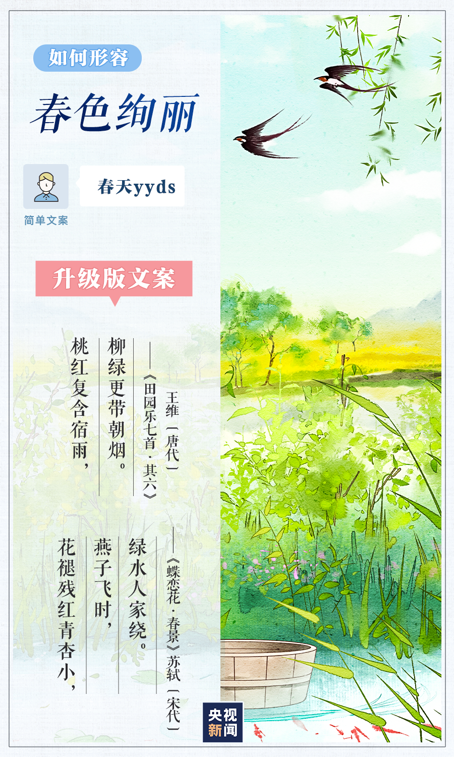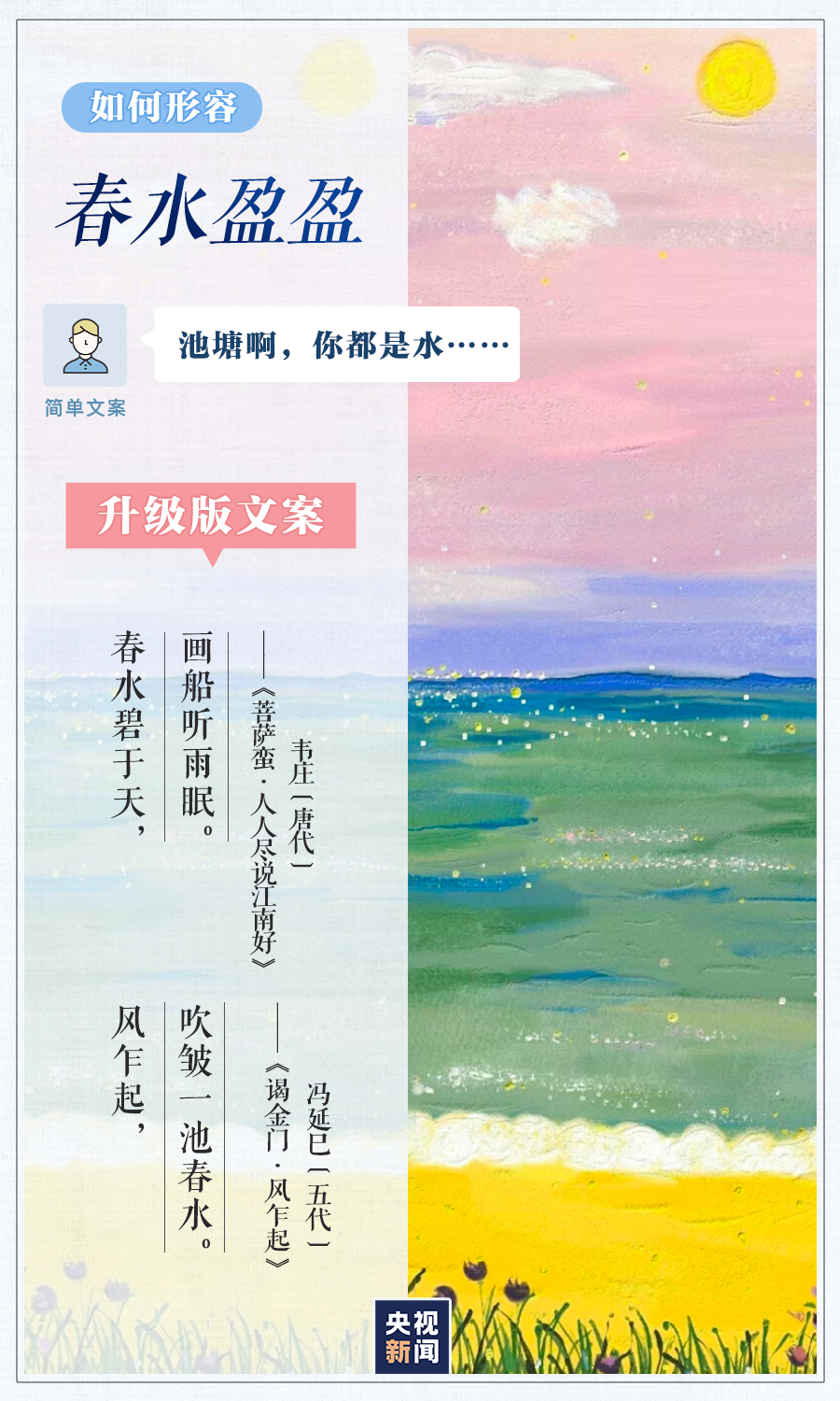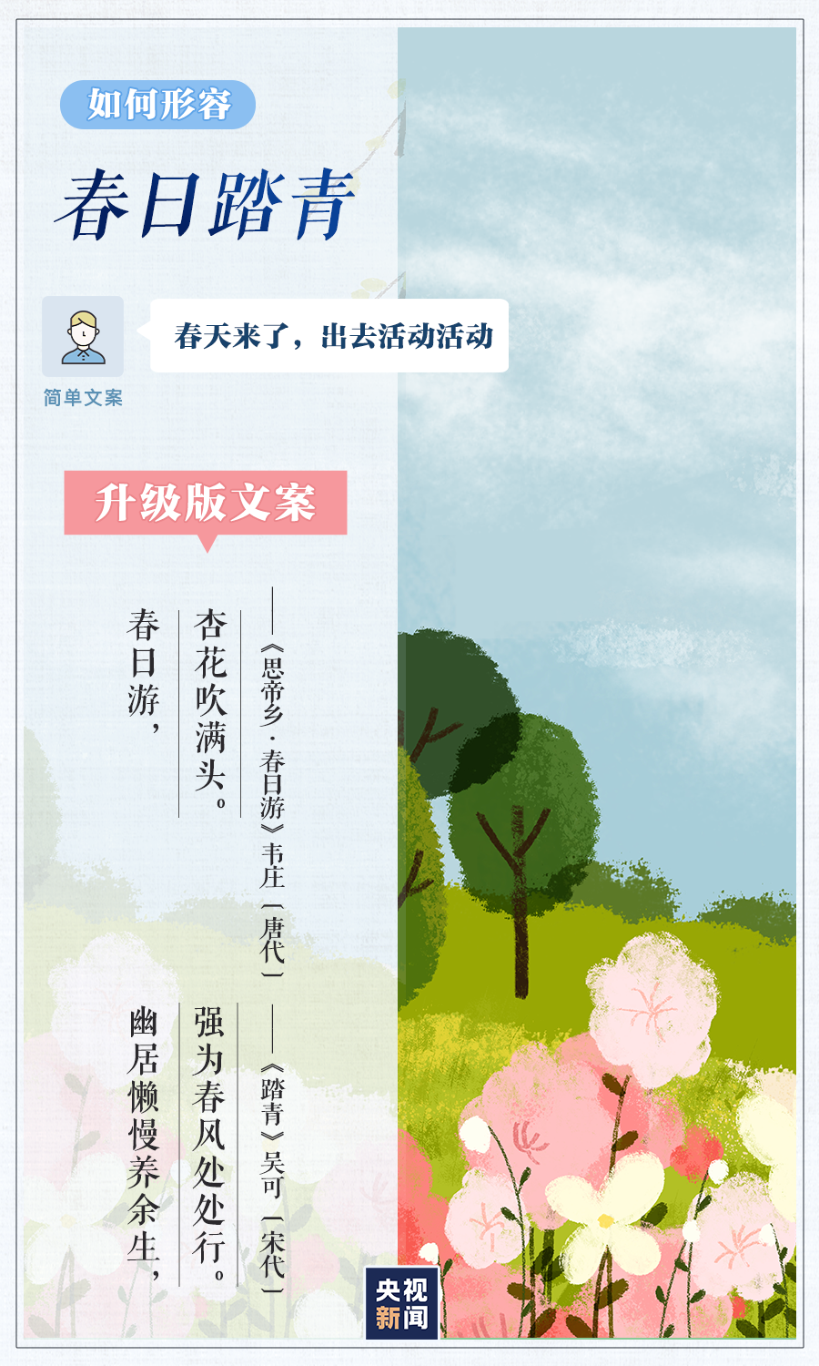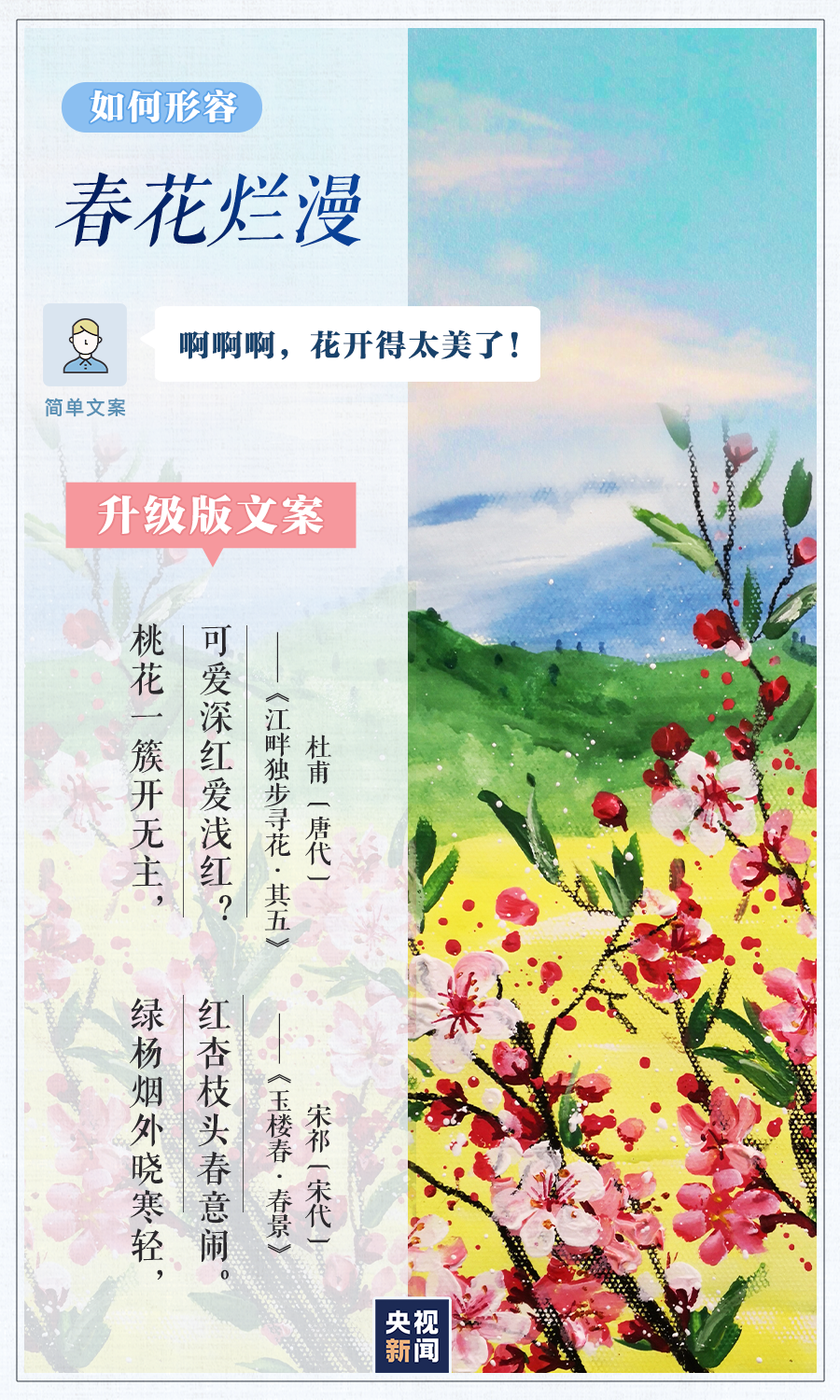 4月23日是世界读书日。春光融融,春色正好,面对各种美景,别人总能出口成章,你却只会说“太美了”?别担心,和小编一起读读下面这些诗歌散文,轻松get一组升级版朋友圈文案!