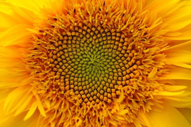 向日葵的头状花序(俗称花盘)上有位于边缘的舌状花和位于中央的管状花,仔细看一下就会发现,头状花序上的管状花,组合成了一条条从中心向外延伸的螺旋线,这些都是斐波那契数列里的数字