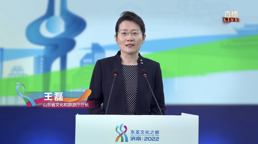 山东省文化和旅游厅党组书记、厅长,省文物局局长王磊发表祝贺致辞。她表示,当选“2022东亚文化之都”赋予了济南发展新的时代语境。希望济南乘势而上、创新突破,以开放包容的姿态,办好独具泉城特色、体现山东风采、彰显中国气派的系列文化旅游交流活动,向世界展示济南之美、山东之美、中国之美、东亚之美。