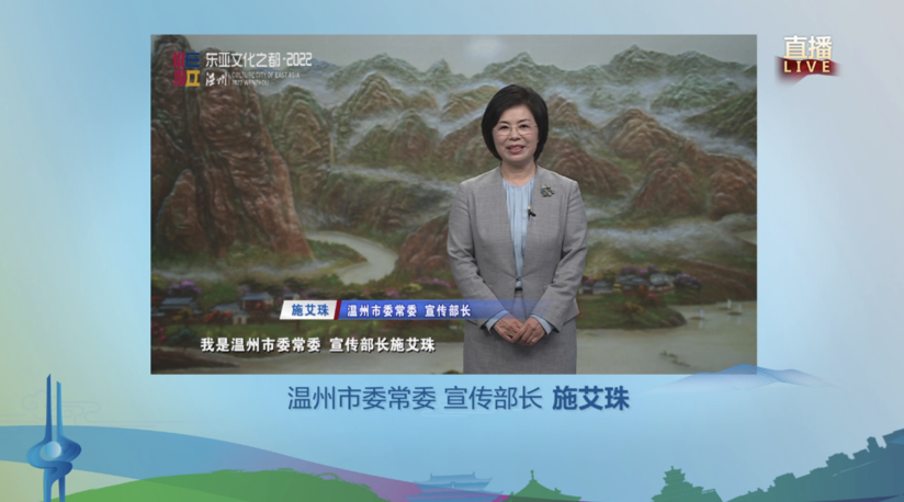 温州市委常委、宣传部部长施艾珠通过视频进行致辞表示祝贺