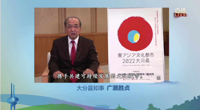 日本大分县知事广濑胜贞通过视频进行致辞表示祝贺