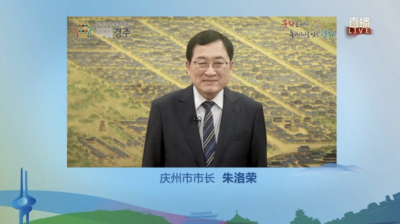 韩国庆州市市长朱洛荣通过视频进行致辞表示祝贺