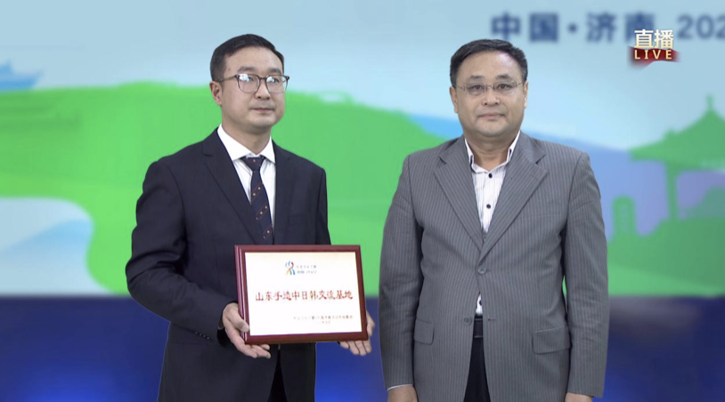 山东省文化和旅游厅二级巡视员王春生先生为山东手造中日韩交流基地代表授牌