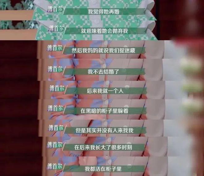 傅首尔谈及从小母亲对父亲的负面言论,让他时至今日都不敢去见父亲一面,尽管父亲一直在向她发出邀请