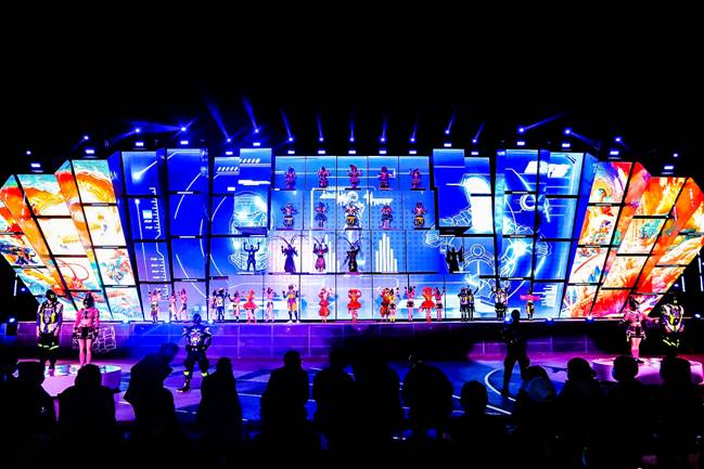 欢乐魔方之《盖世英雄》城市空间互娱装置体验秀以东方文明展开,开发中国主题公园融演艺IP“欢乐齐天”,融合东方文化、武侠精神、中国功夫、大唐礼乐舞仪文化提炼出:鼓韵、扇舞、飞天胡旋,以及未来感的潮流街舞、跑酷杂技特技、结合最新升级的国内最大沉浸火海舞台等十余种表演,200余项高科技手段,交互打造“恢弘史诗、极限震撼、超燃潮酷”的视觉盛宴。