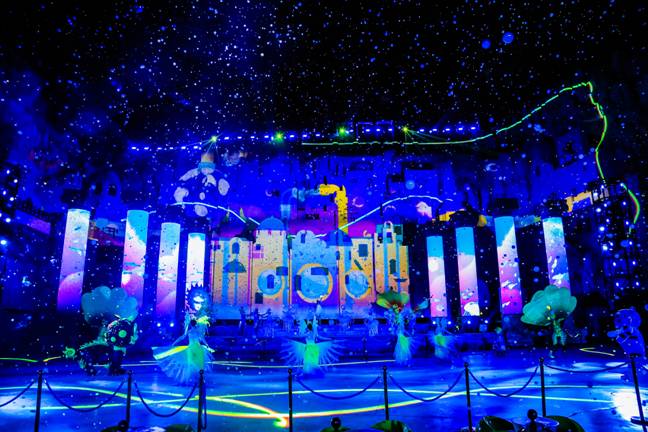 奇幻东方之《玩宠归来》万千星光狂欢幻影秀独创IP群组“欢乐家族”,带领游客遨游太空、浪漫海洋、奇幻森林。百名演员豪华阵容与游客欢乐起舞,互动、体感、追踪光影等技术手段加持,打破了游客与舞台的边界,真正做到了将光影表演体验带到沉浸场景之中。两大幻影秀由参与2022冬残奥会闭幕式的张霖导演执导,携豪华班底倾情打造,总制作方为立诚科技合力呈现。