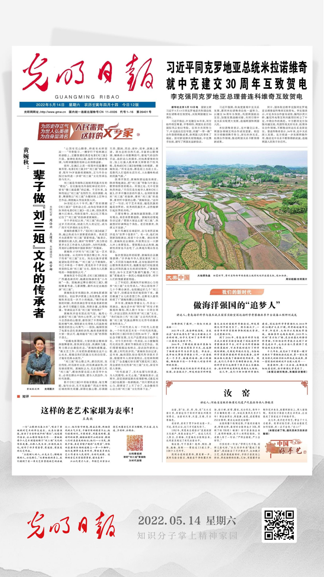 每次想到这样的场景,黄婉秋总会激情澎湃:“许多海外华人朋友喜欢‘刘三姐’,不仅因为她的率真,还有祖国动听的山歌和秀美的风光,能激发他们对祖国美丽山河和民族文化的深切情怀。”黄婉秋相信,如今文艺新气象朝气蓬勃,“刘三姐”更能成为一条民心相通的纽带,将华人们的情感紧密相连。