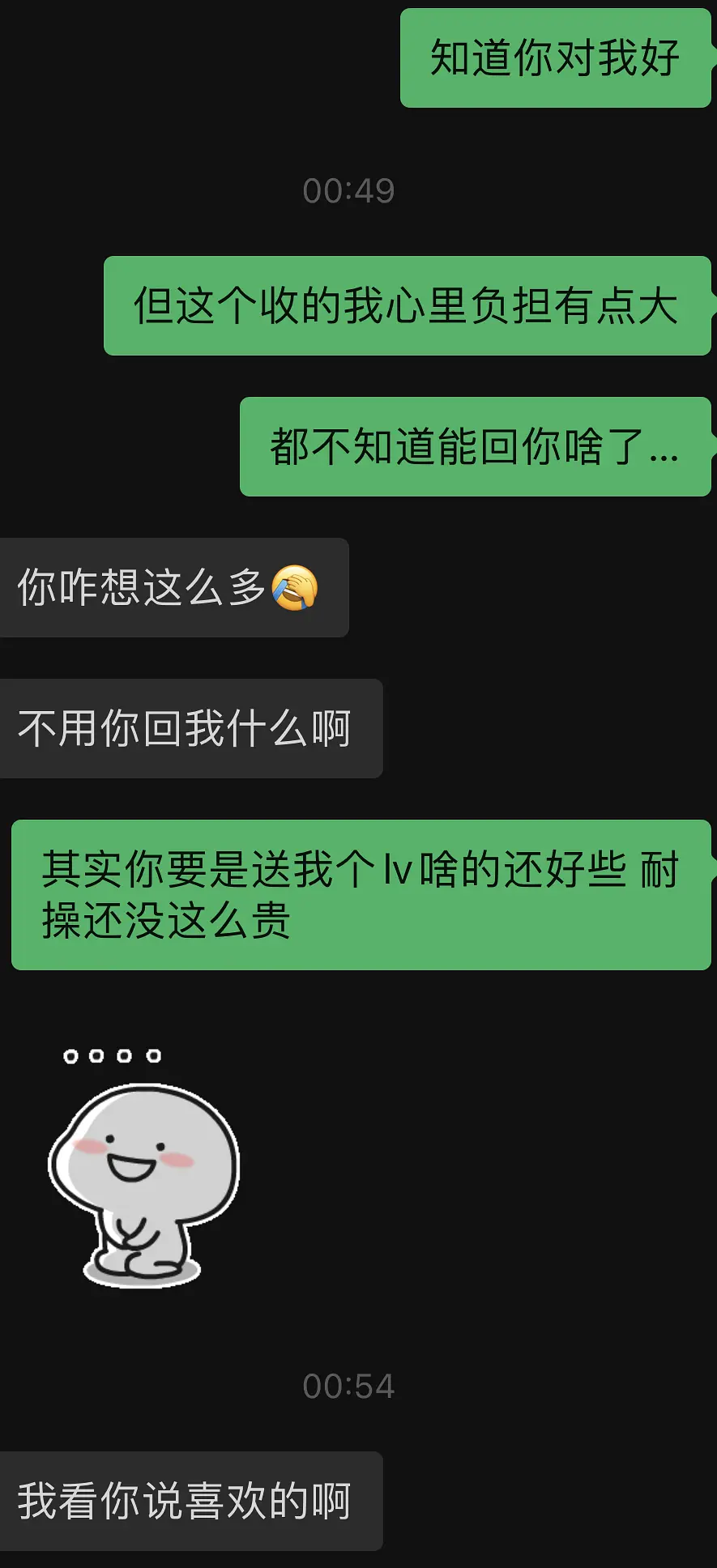 “知道你对我好,但这个收的我心理负担有点大,都不知道能回你啥了……”