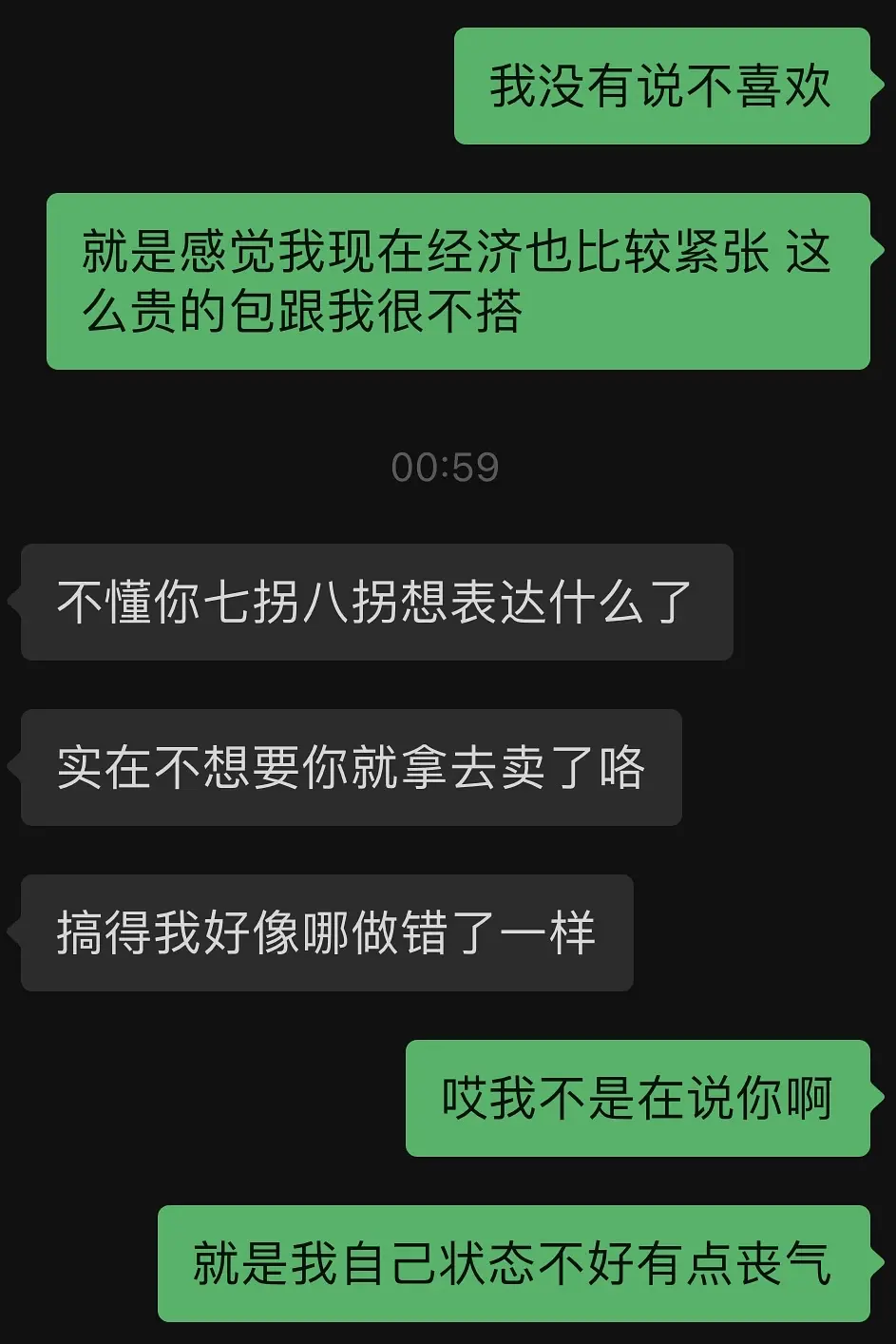 “不懂你七拐八拐想表达什么,实在不想要你就拿去卖了咯,搞得我好像哪里做错了一样。”