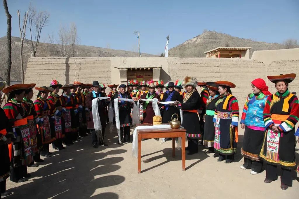 在庄廓前举行活动仪式的土族人。叶雨辰供图