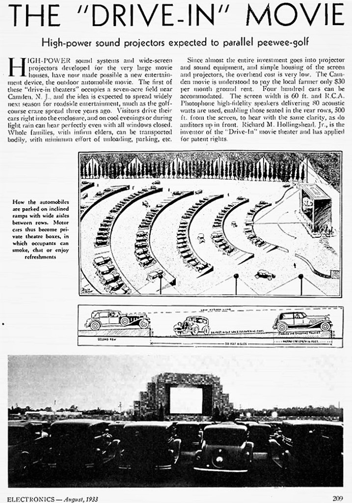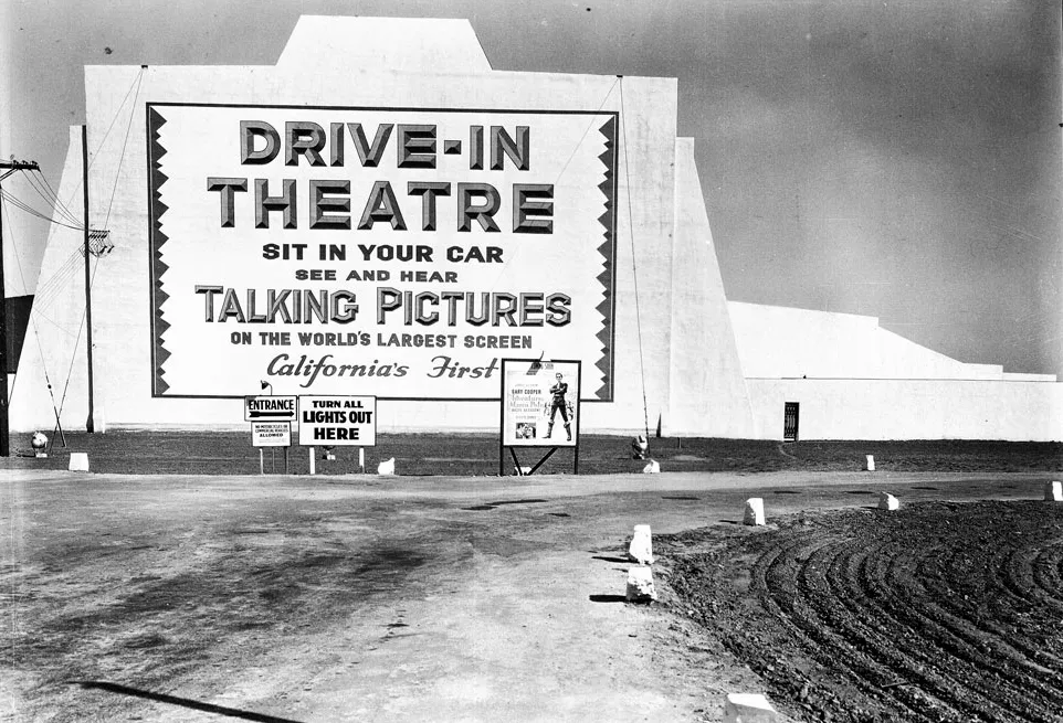电影诞生后的第38年,另一个脑洞大开的美国人Richard Hollingshead Jr.在新泽西州创办了第一家汽车电影院。人们不必下车,只需要将车停在固定的空位中,就可以在车内看电影。