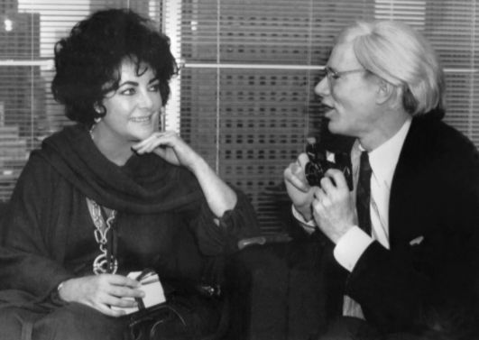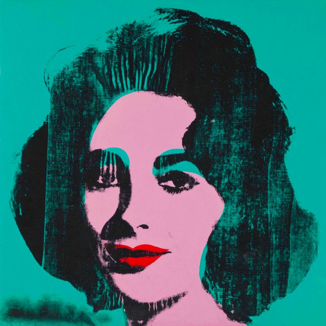 沃霍尔与伊丽莎白·泰勒的合照(上)及为她创作的肖像画(下)