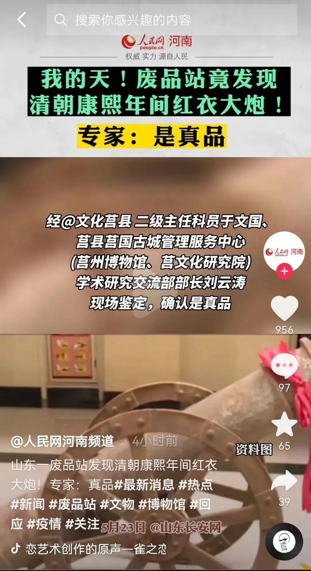 据鲁网报道,两台大炮于4月底发现后,莒县文化和旅游局二级主任科员于文国和莒县莒国古城管理服务中心(莒州博物馆、莒文化研究院)学术研究交流部部长刘云涛参与了鉴定,并得出结论为真品。