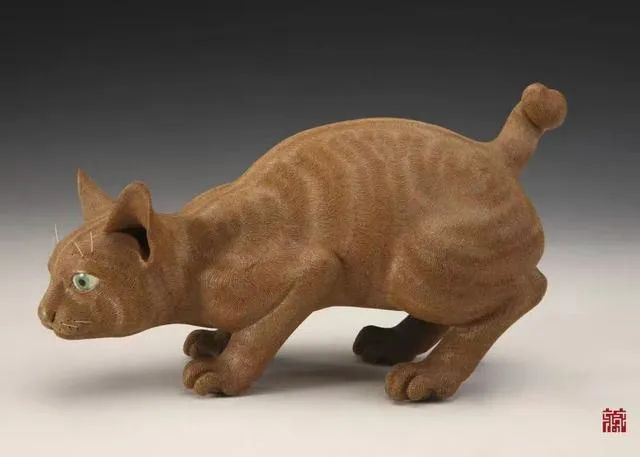 粤博馆藏文物石湾窑陶塑金丝猫(清)