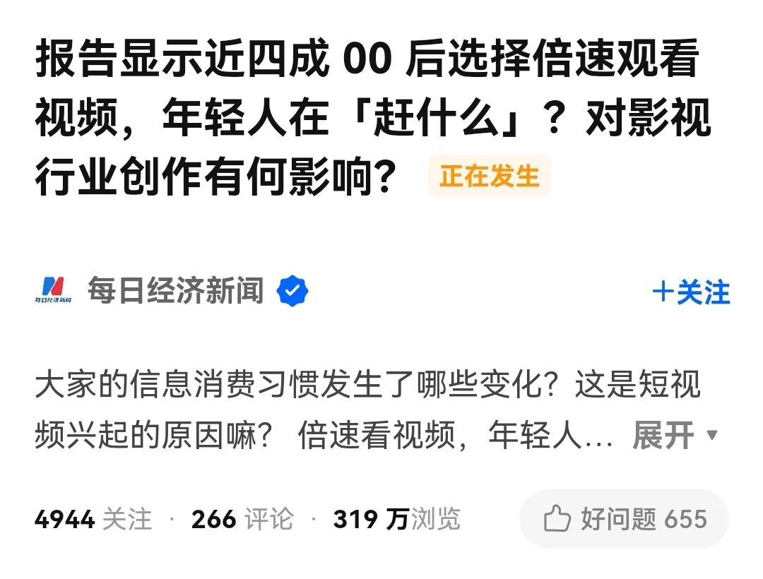 这是前段时间一个让专家不解的数据,四成 00 后看视频要开倍速。
