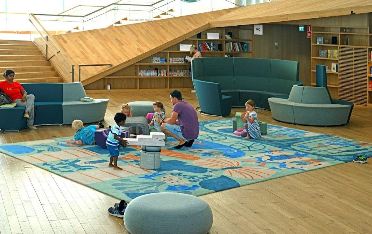 图书馆主要是三层,每一层都有各自不同的功能。第一层是市中心的免费大客厅,市民可以互动、分享、交流,同时配有电影院、展厅和咖啡厅。第二层科技感十足,桁架之间灵活设置了很多小房间,满足男女老少工作和娱乐休闲各方面需求。自由职业者可以免费租一个空间办公,或者开个团体会议。孩子们有专门的电脑游戏室,提供PC、VR眼镜等设备,大人们有专业的录音棚、琴房、摄影工作室。市民们甚至在这里几乎可以借到所有生活中需要用到的物品,桌游游戏、电脑游戏,手提电脑、iPad、摄像机、耳机、键盘等。第三层是传统的图书馆,也是亲子活动空间,孩子们可以在安静的橘色阅读室里,听妈妈讲故事。