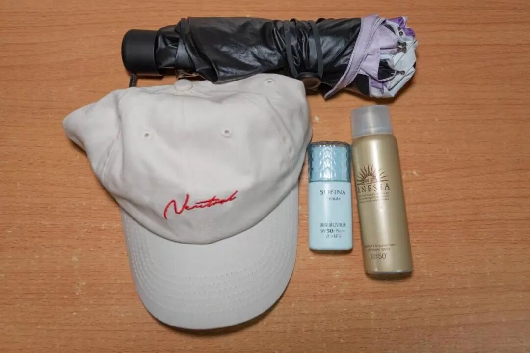 防晒霜、遮阳伞、帽子……