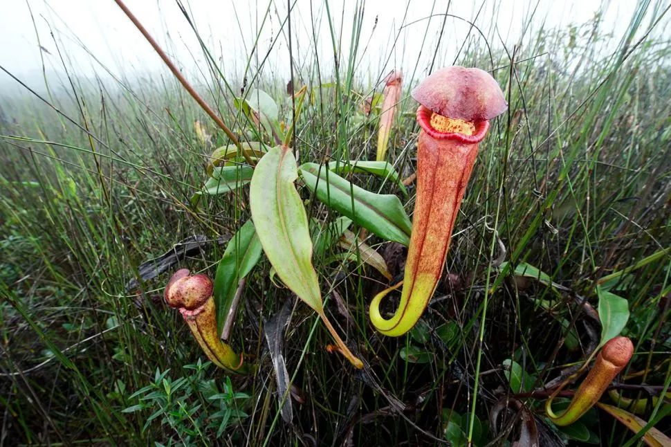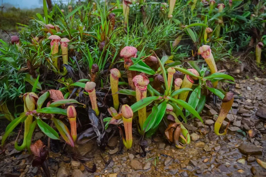 它们是波哥猪笼草(Nepenthes bokorensis)和霍尔登猪笼草(Nepenthes holdenii),都是柬埔寨的特有植物。它们会诱捕和消化昆虫来获得营养,借此在低营养的土壤中生存。
