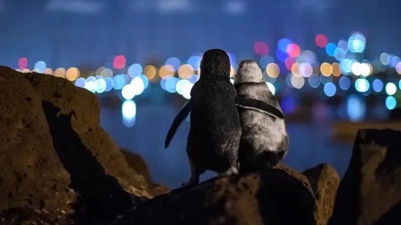 这张著名的两只丧偶企鹅互相依偎的照片,主角也是小蓝企鹅|Tobias Baumgaertner