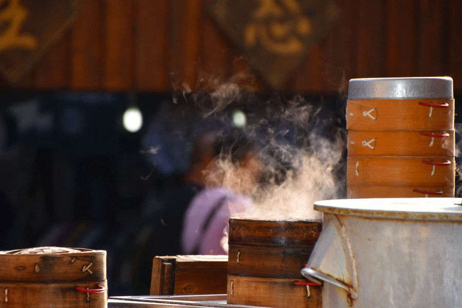 在广州叹茶是要等的。等服务员什么时候推着小车子穿进拥挤的过道,一旦出现,个个火速提起脑袋看,毕竟那里一幢幢叠得高矮不一的小蒸笼,就藏着他们的心头好: