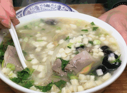 别看关中大汉的手掌厚实宽大,却能把一饼白馍掰得细巧,一角一角比指甲盖还要小,讲究的时候能掰上一个小时,并且容易得到熬汤师傅的青睐,多舀几块牛羊肉给你。