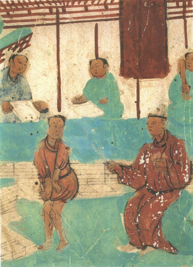 学生时光更是童年不可缺少的记忆,对于古代的孩子来说也一样。先生正在责罚学生,学生弯着身子挨打的姿势是不是似曾相识;看着壁画,不由想起曾经的老师同学,还有在学校度过的点点滴滴。