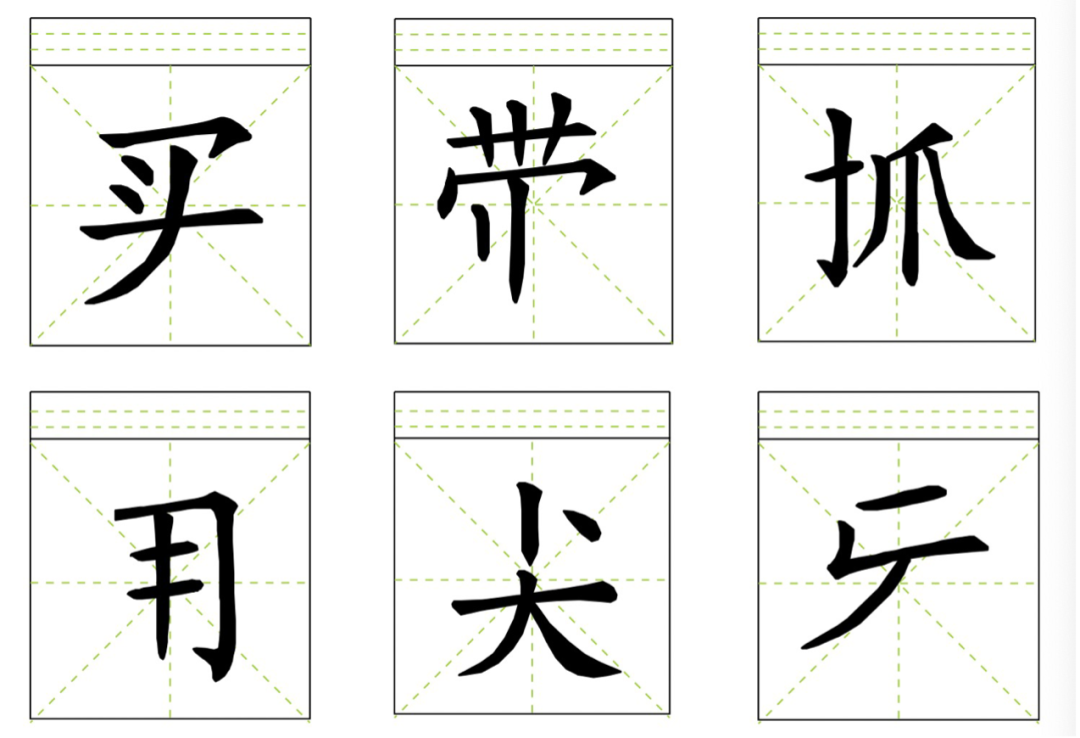 其实,无论是英语还是中文,母语使用者们都是通过整体字形来识别单词/字的,这也是罗林森博士实验的基础。下图是对外汉语教学常会用到的笔画练习,虽然对于母语者来说轻而易举,但对那些尚未形成整体字形记忆的初学者来说,给这些字填上缺失的笔画却非常难。