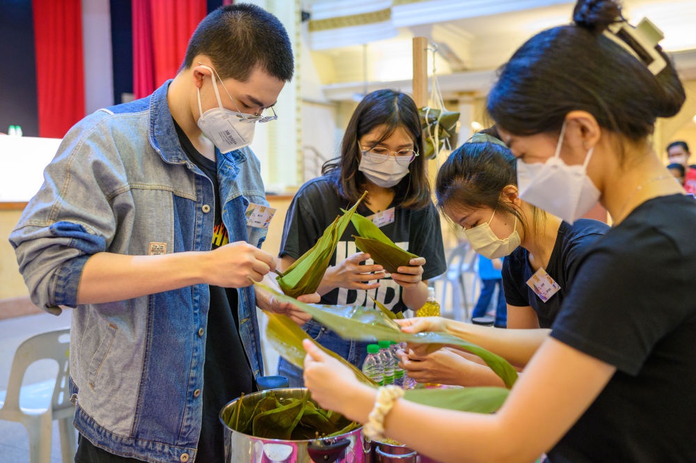 来自马来西亚全国16支队伍参加了“裹粽子”比赛,选手大部分是高校学生。通过制作不同口味的粽子,年轻人亲身体验着中华美食文化。