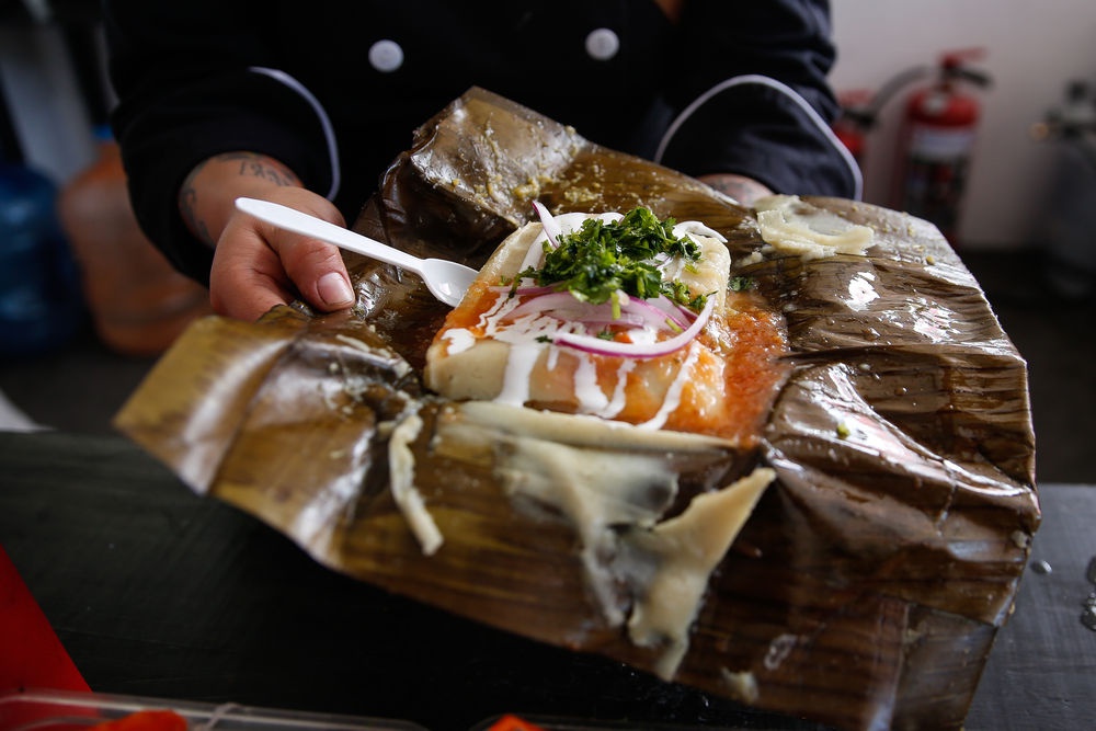 先将玉米粒磨成颗粒,再加以肉片和辣椒等馅料,最后用玉米叶或香蕉叶包裹后蒸烤,便可制作出“经典款”塔玛尔。从牛肉、猪肉、鸡肉、兔肉、海鲜等“荤馅”,到辣椒、菠萝、草莓等“素馅”,各式塔玛尔甜、咸、辣口味一应俱全。