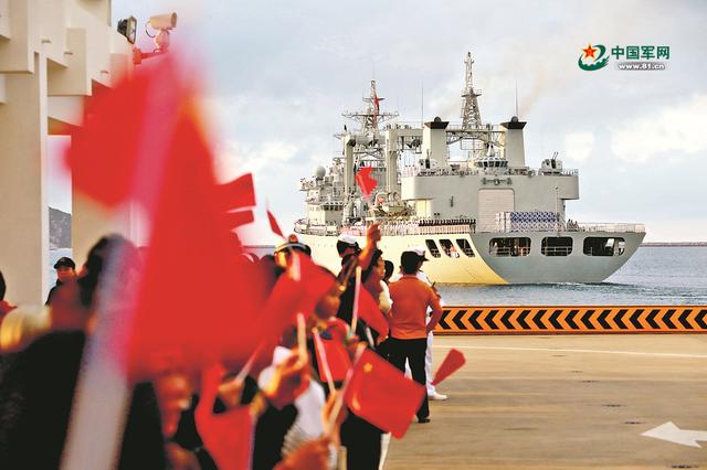 “编队准备完毕,请示起航!”编队指挥员向南部战区海军领导报告后,军乐队奏响《欢送进行曲》,编队各舰依次解缆,缓缓驶离码头。甲板上,任务官兵整齐列队,向祖国和人民庄严敬礼、挥手告别。