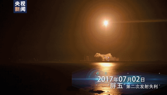 2017年7月2日,长征五号遥二火箭在海南文昌航天发射场实施发射。火箭飞行至346秒时突发故障,发射任务失利。
