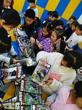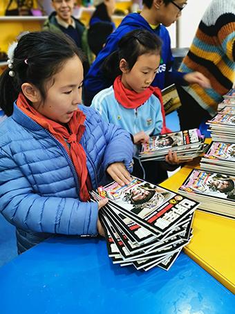 这是《世界军事》2019年度最后一次进校园活动。此前,他们曾走进北京理工大学、陆军装甲兵工程学院、空军指挥学院等军地高校。杂志主编赵秀娟表示,相比发达国家,我们对青少年的军事知识和国家安全知识普及工作,还有很多不尽人意的地方。作为军事媒体人,我们应该主动承担这一责任。活动当天,奋斗小学的孩子们,也用最童真的热情炽热地燃烧编辑人员的职业激情。因为是排队领取,且每人限额领取一本,许多学生还在“候场”时就商量,“大家要选不同的,以后交换着看”;一些同学现场就开始阅读,但无奈老师在催促,只好“盲选”,取了杂志之后又露出恋恋不舍的表情;更多的学生,则是拿着杂志迫不及待地向编辑请教,请主编、编辑签名……