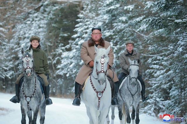 12月4日,金正恩骑马登白头山(图/朝中社)