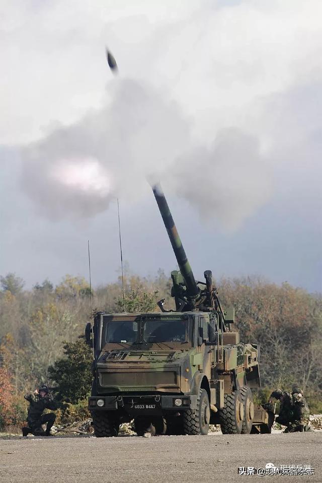 1998 年,法国陆军对首门全系统样炮进行了大量试验,法国陆军武器工业集团根据试验结果对样炮进行了进一步改进,并于2002 年研制出第二门全系统样炮(P2),这门样炮后来被命名为主系列炮(PS),其显著特点是安装了整体装甲防护驾驶舱,可以防御轻武器的直接打击,乘员从6 人减少为5 人,还简化了装弹和液压系统。法国陆军于2000 年10月订购的5 门“恺撒”,并于2003 年6 月交付完毕。