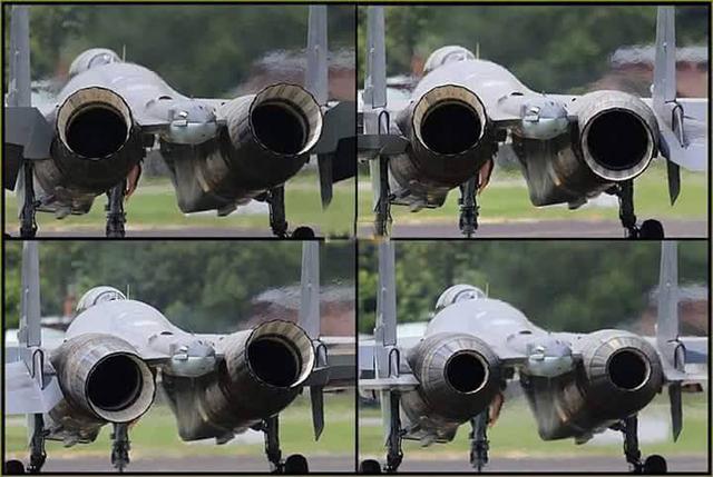苏-35S地面调试全维推力矢量喷口的不同状态组图。