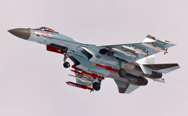 图中这架苏-35S挂装了8枚R-77中距空空导弹。