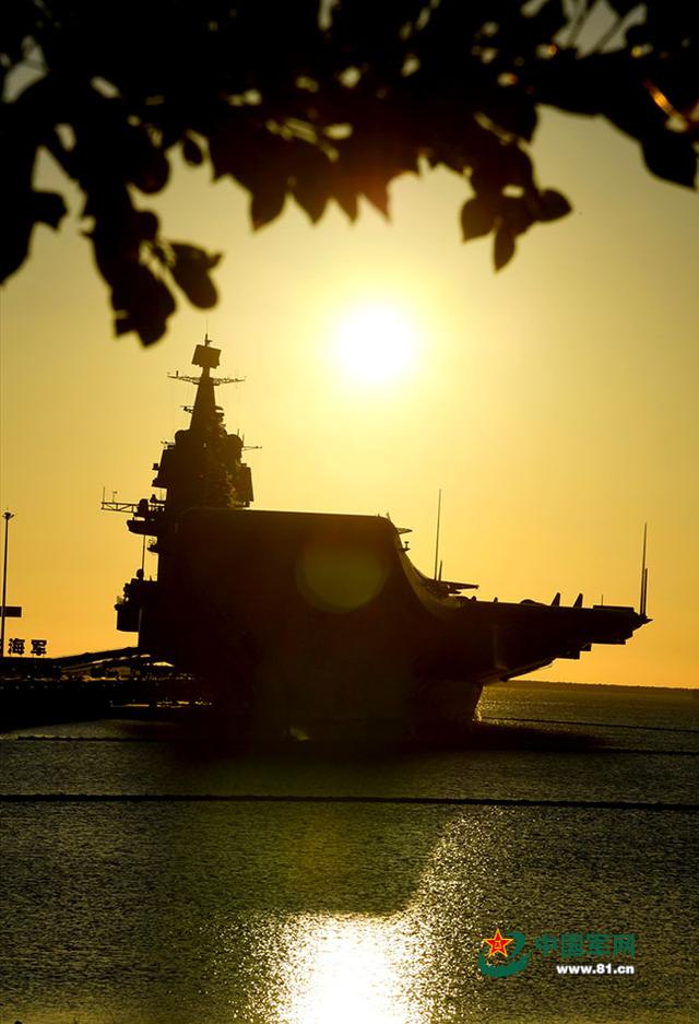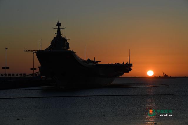 这是霞光中的山东舰。中国军网记者 冯凯旋 摄