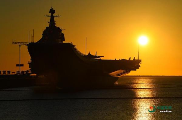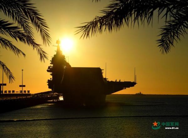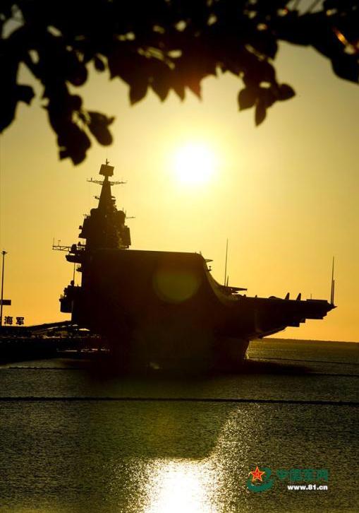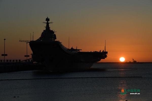 12月17日下午,我国第一艘国产航空母舰山东舰在海南三亚某军港交付海军。经中央军委批准,我国第一艘国产航母命名为“中国人民解放军海军山东舰”,舷号为“17”。这是记者在前一天拍下的山东舰剪影照,霞光中的山东舰停靠在港口随时等待祖国和人民的检阅。中国军网记者 冯凯旋 摄 图片来源:中国军网