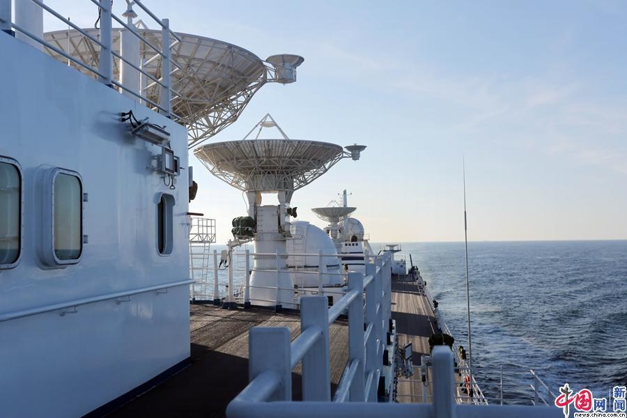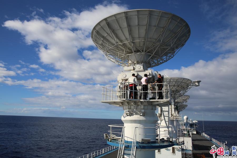远望5号船通信系统参加任务联调演练。王煦之 摄