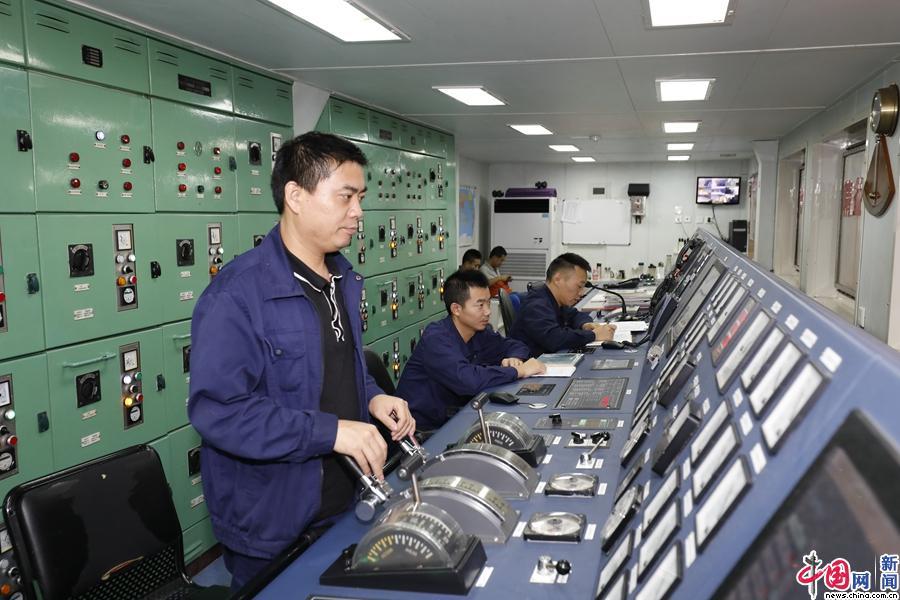 远望3号船轮机员坚守岗位。王雪岩 摄