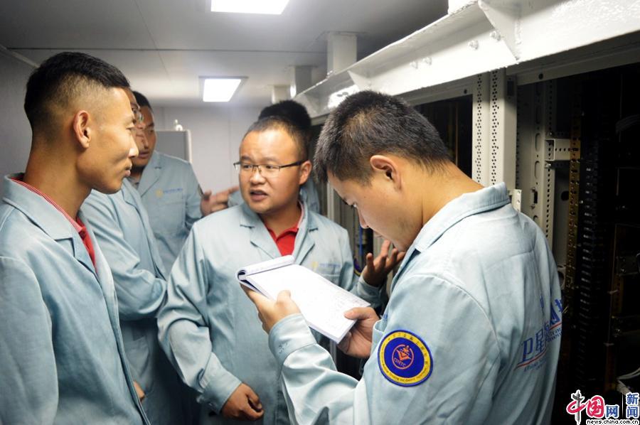 远望7号船科技人员组织岗位教学。黄杰 摄
