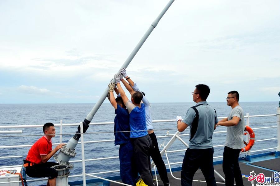 航行途中,远望5号船组织天线可靠性检查和维护保养。王煦之 摄