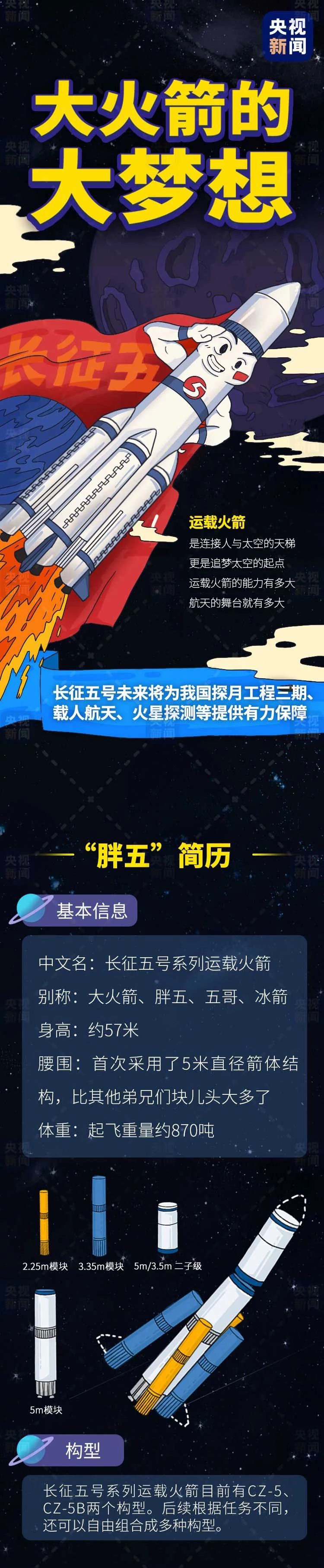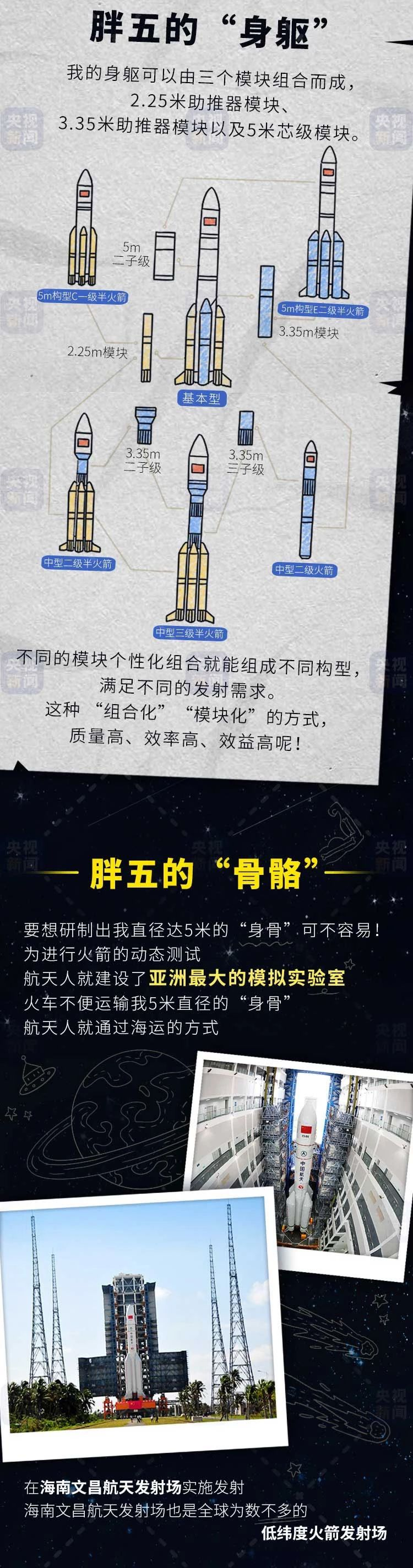 长征五号遥三运载火箭又称“胖五”,因其是我国最高、体积最大、运载能力最强的火箭而得名。
