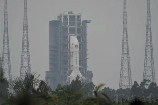 今年10月底,长征五号遥三火箭运抵中国文昌航天发射场后,按照飞行任务测试发射流程,陆续完成了总装、测试等各项准备工作。