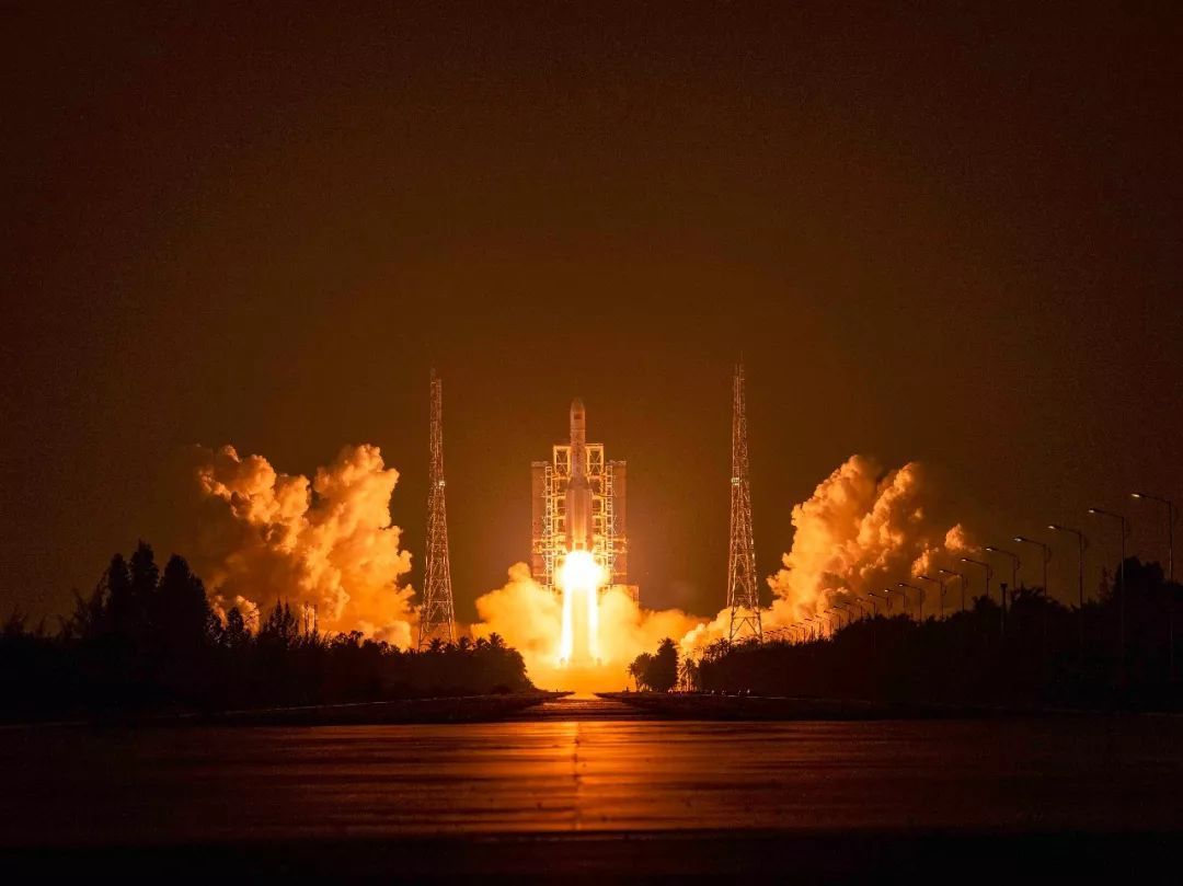 长征五号遥三运载火箭点火瞬间(通讯员 周伦杰摄)