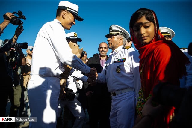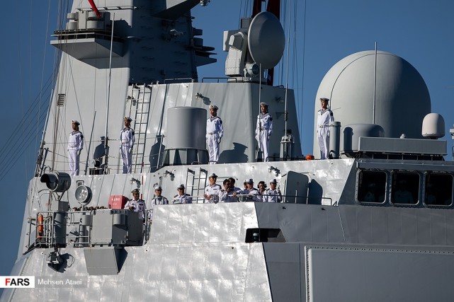 日前,伊朗法尔斯通讯社发布一组赴伊朗参加中俄伊海上联合演习的解放军海军052D型导弹驱逐舰西宁舰抵达伊朗恰巴哈尔港并受到伊朗海军热烈欢迎的图片,在西宁舰进入恰巴哈尔港时,舰上官兵整齐列队站坡致敬。国防部新闻局局长、国防部新闻发言人吴谦大校12月26日在国防部例行记者会上表示,根据中国、俄罗斯、伊朗三国军队达成的共识,中俄伊海上联合演习将于12月27日至30日在阿曼湾地区举行。