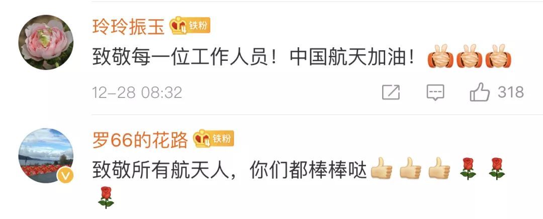 同时,也有很多网友致敬每一位工作人员为中国航天加油!